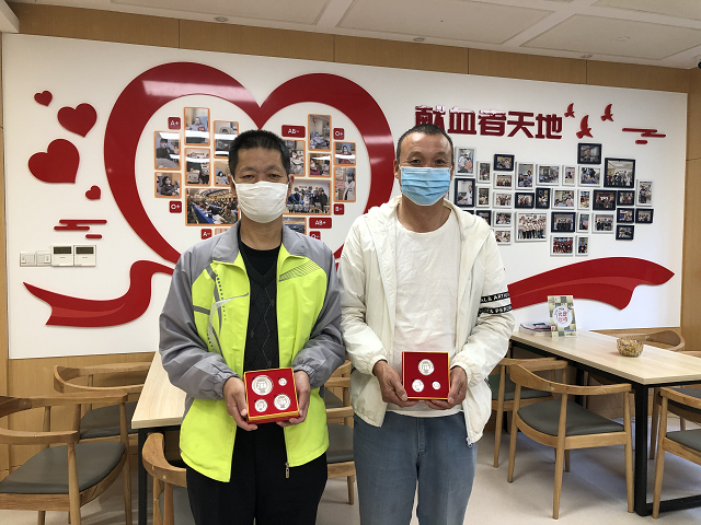 为了表达对固定成分献血者长期坚持奉献爱心的特别感谢和敬意,浙江省血液中心为固定成分献血者中的佼佼者们特别制作了一套成分献血纯银纪念币,只要您在浙江省血液中心捐献成分血100次以上,就可以获得这套精美纪念币,其中纪念币分为100次和200次两种规格。