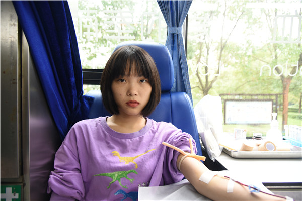 在活动献血现场,学子们井然有序地进行着填表、接受体检,并登车献血。“疫情那段时间发生的很多正能量的事让我特别感动,虽然现在我们抗击疫情取得了阶段性的胜利,但仍然需要时刻保持‘生于忧患’的心态,所以我也来贡献一点正能量吧!”00后甘金丹同学说道。