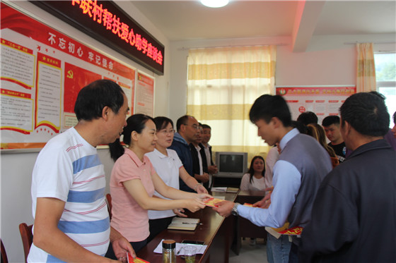 (通讯员:胡崇爱)为全力打赢脱贫攻坚战,助力联村帮扶工作巩固提升,做好“六稳”工作、落实“六保”任务,着力解决村民子女上学难问题,将助学帮扶工作落到实处, 9月17日,安康市中心血站在旬阳县麻坪镇老庄沟村开展“爱心助学”活动,为11名大学新生发放助学金2万元 。市中心血站副站长詹胜萍,旬阳县麻坪镇纪委书记高久祥,老庄沟村支部书记、村主任及受助学生、家长参加活动。活动由市中心血站副站长邓娟主持。