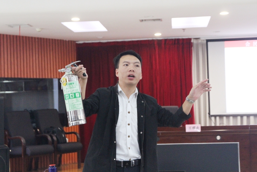 在培训会上,万教员结合近年来发生在我们身边的几起有重大影响力的火灾视频案例,讲解了火灾发生时的危害性和火灾防控工作的重要性,并就日常消防的防患排查、用电安全、火灾的预防、疏散逃生等知识进行了深入浅出的讲解。并现场演示了灭火器、防毒面具等常用消防器材的使用方法。随后逐一排查了各部门消防安全隐患。