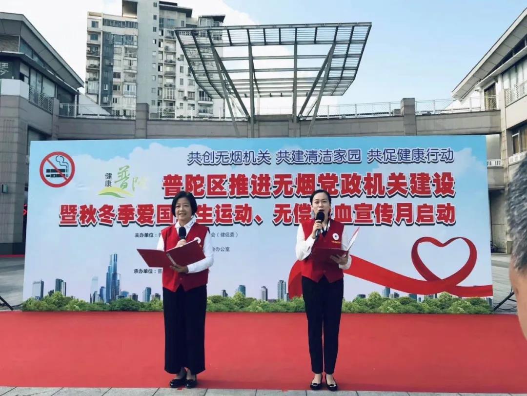 “共创无烟机关 共建清洁家园 共促健康行动”——2020年普陀区推进无烟党政机关建设暨秋冬季爱国卫生运动、无偿献血宣传月启动。