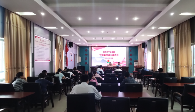 9月30日上午,百色市中心血站召开中秋、国庆节前廉政谈话会,支部书记、站长梁朦尹主持会议并做廉政提醒讲话。全站党员、入党积极分子和中层以上领导干部等20余人参加会议。