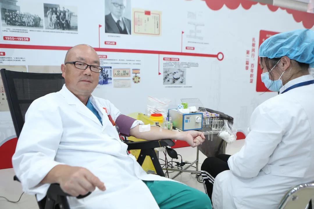 院直二支部书记徐林、手术一支部书记李学庆,麻醉科副主任蒋克泉,普外科副主任医师高斌都有过无偿献血经历,他们特意抽空赶来再次献出热血。