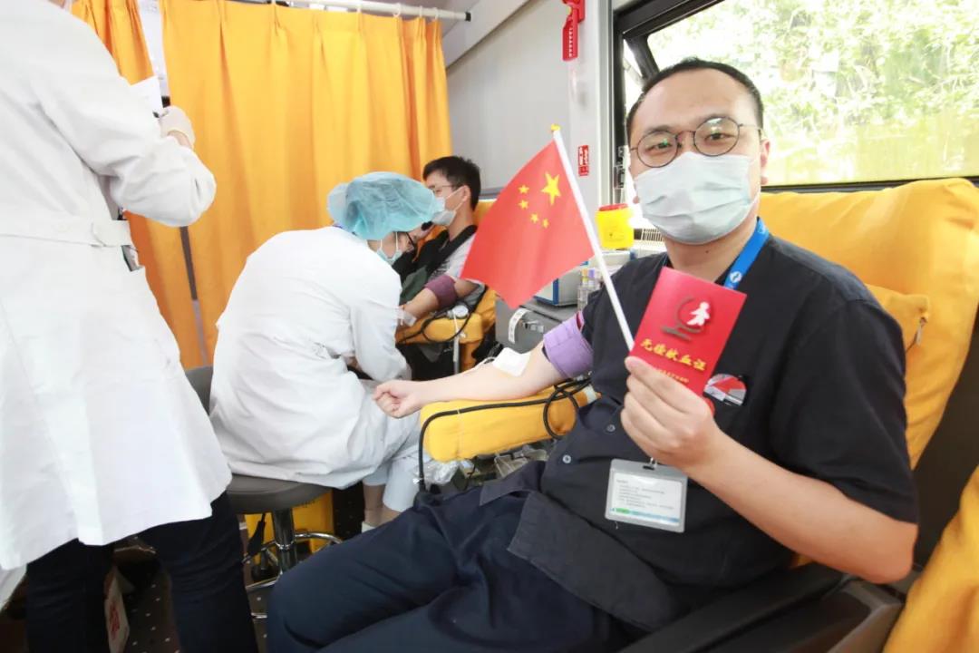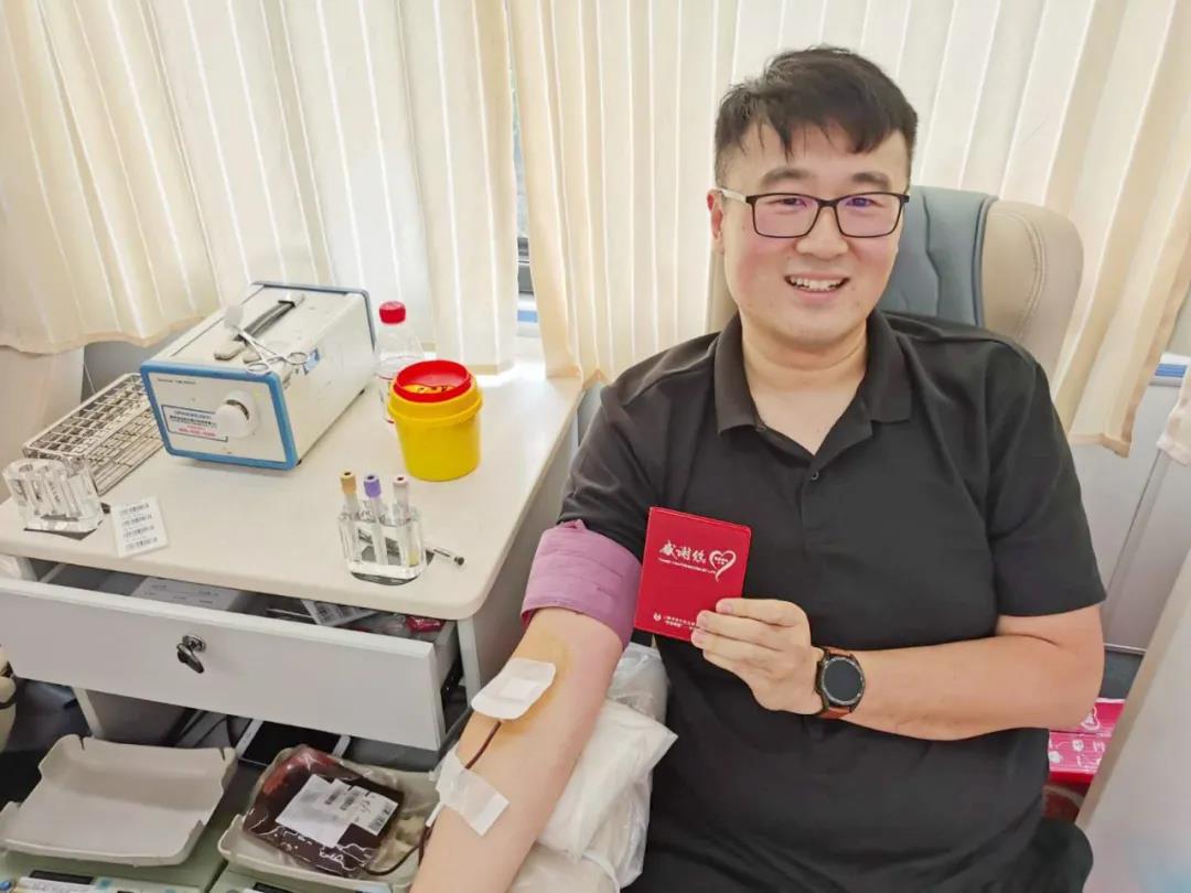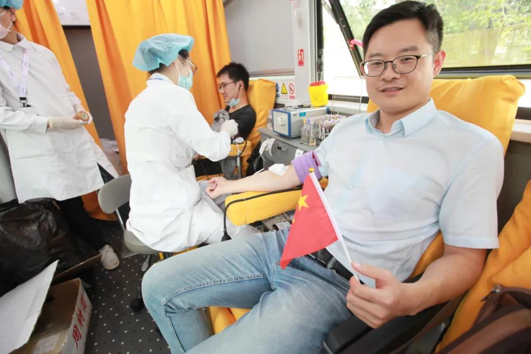 另讯:在闵行区卫健委轮岗的青年管理干部陈斌闻讯无偿献血活动后,有过献血经历的他特意赶去再次献出400ml热血。
