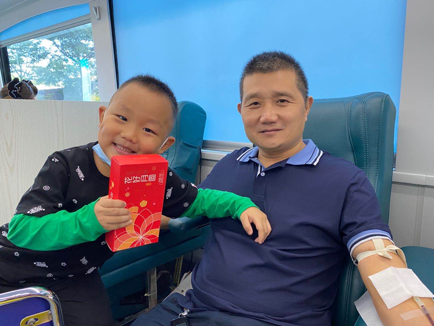 张义明先生是我们血液中心的“路人转粉丝”,每次间隔时间一到就会组织亲朋好友一块前来献血。长假第一天就遇到捐血车,三步并两步的迈上去,在儿子的陪伴下奉献爱心,乖巧的儿子在他旁为他加油鼓气。
