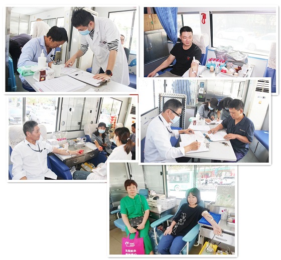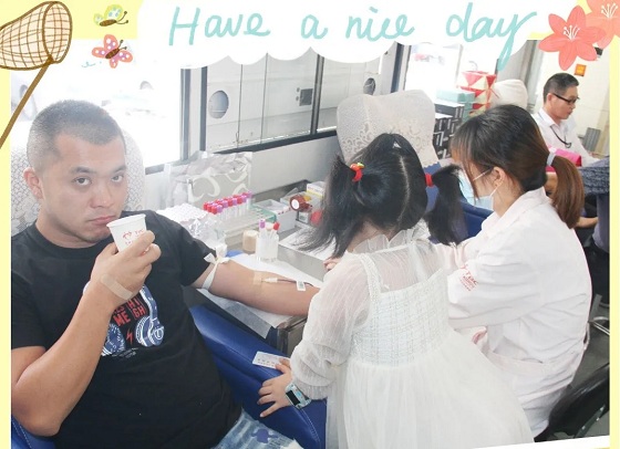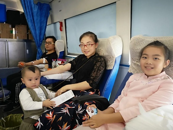 在路桥中盛广场献血车前,前来咨询献血的市民络绎不绝,车上挤满了等候体检爱心人士。他们有的拖家带口,有的约上好友,一起前来献血。见到此番热情,就连血站的医护人员都被调动起了更大的热情,在志愿者的协同和帮助下,加快了检验和采血的节奏,希望为更多的爱心人士服务周全。在献血者中有这样可爱的一家四口,妈妈是一位资深献血者,总量已超过4000毫升,这一天,她特意带着全家一起奉献爱心,她老公在她的鼓励下也捐献了400毫升血液。一家人在献血车上合影以此纪念中秋国庆双节同庆。以献血助团圆,以奉献庆国庆,亲情、真情、家国情互相融合,整个献血现场其乐融融。
