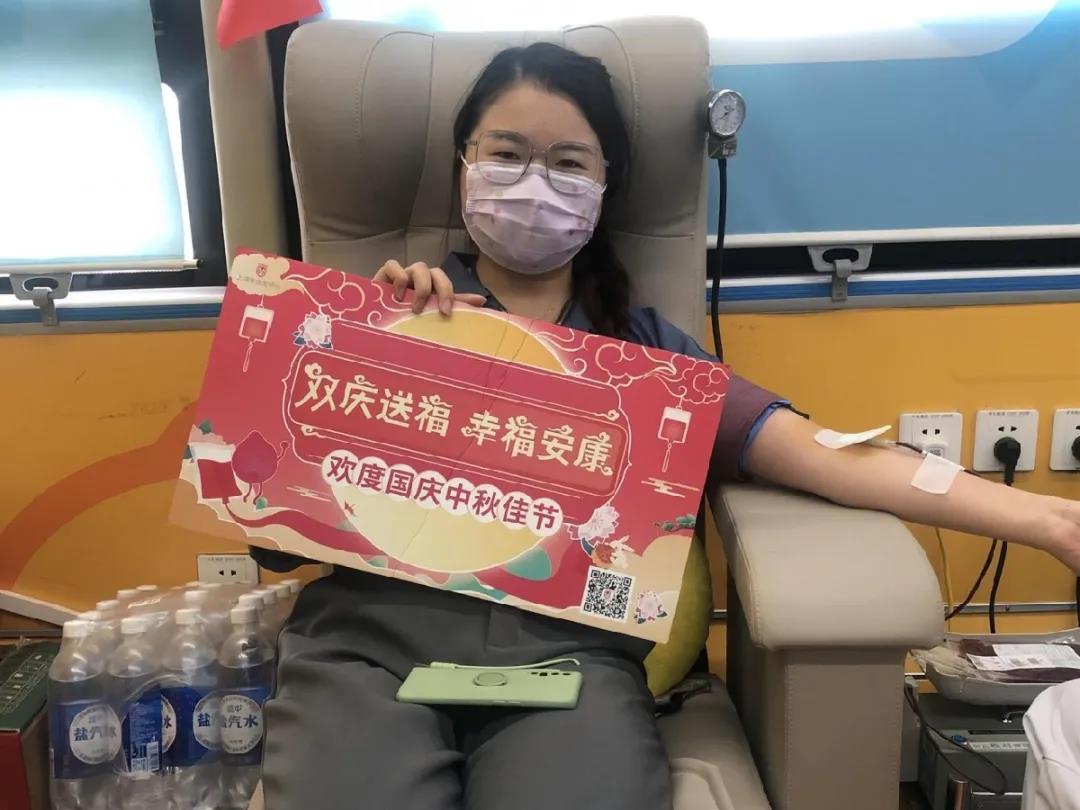 在上海读研的小姑娘尹岩岩在志愿者的热情耐心的动员下第一次撸起袖子捐献热血,她笑着说:“妈妈总觉得我贫血,没想到我也可以成为无偿献血志愿者,在这国庆中秋的双节里,不但能帮助他人,也是送给自己最好的礼物。”