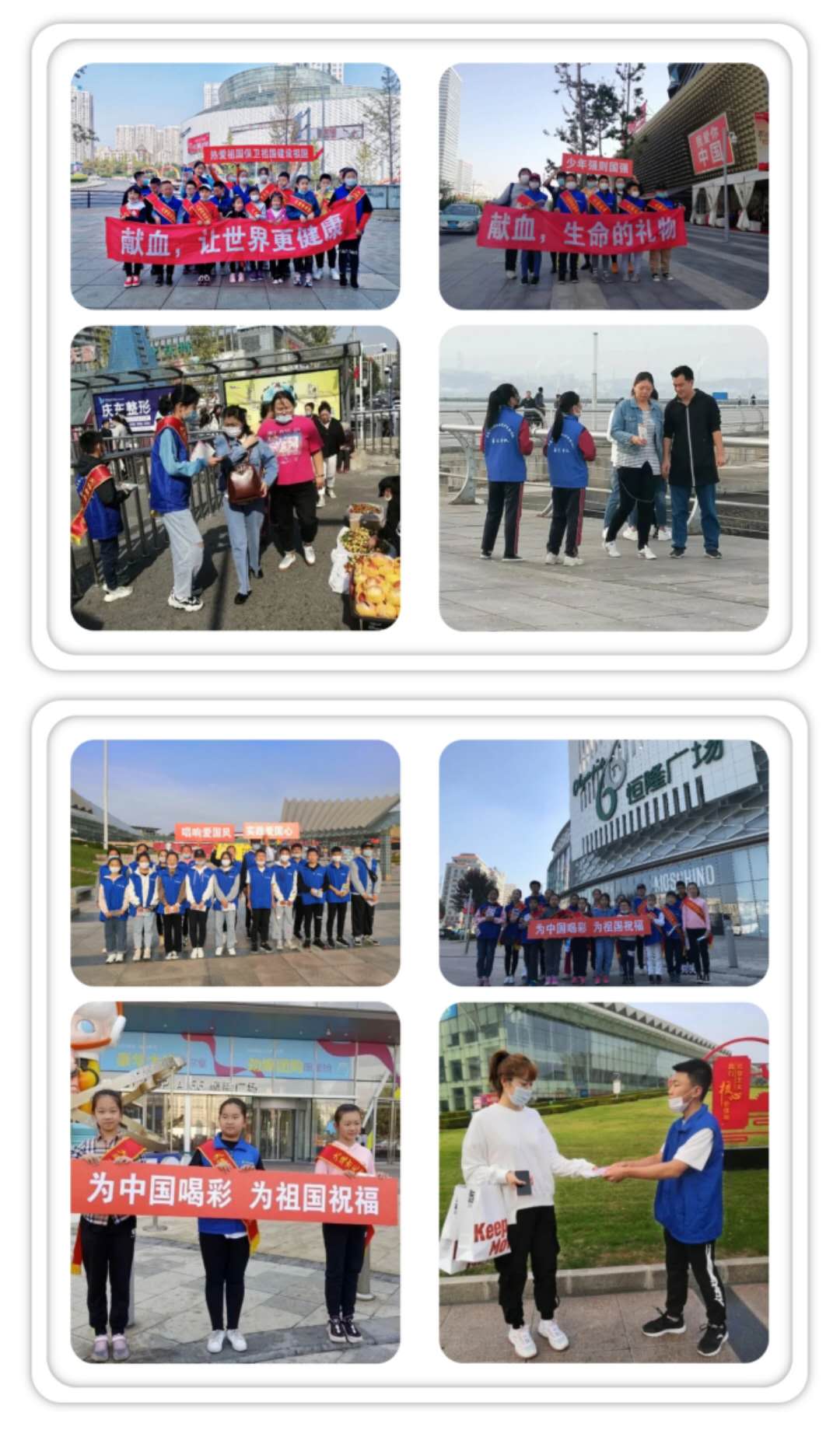 十一长假期间,大连市无偿献血者志愿服务队青少年宣传队的200多名孩子们,在游人如织的人民广场、开发区新玛特广场、恒隆广场、万达广场、华南广场、时代广场、开发区文化广场、国际会议中心宣传无偿献血,为祖国祝福!