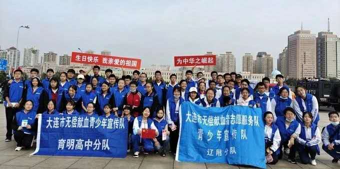 少年强则国强,宣传献血祝福祖国-大连市无偿献血者志愿者服务青少年宣传队活动