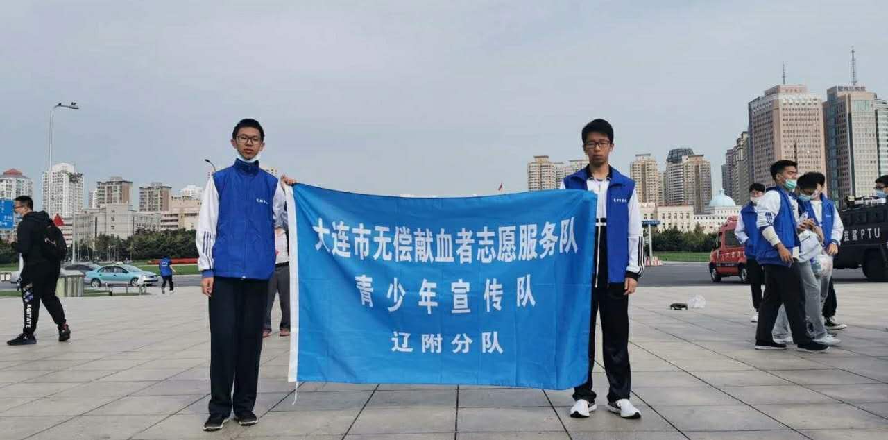 大连市无偿献血者志愿者服务青少年宣传队成立于2018年10月7日,共有育明高中、辽附,九中,中山实验,嘉汇中学、南金实验中学,七只分队,近300多人,他们在繁忙的学习中,不忘宣传无偿献血,每人年均公益时长达40小时。