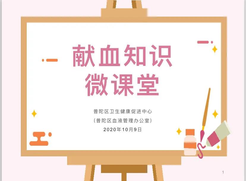 为广泛开展《中华人民共和国献血法》《上海市献血条例》实施二十二周年无偿献血宣传,2020年10月9日,普陀区“献血知识微课堂”在宜川社区文化活动中心正式开讲。