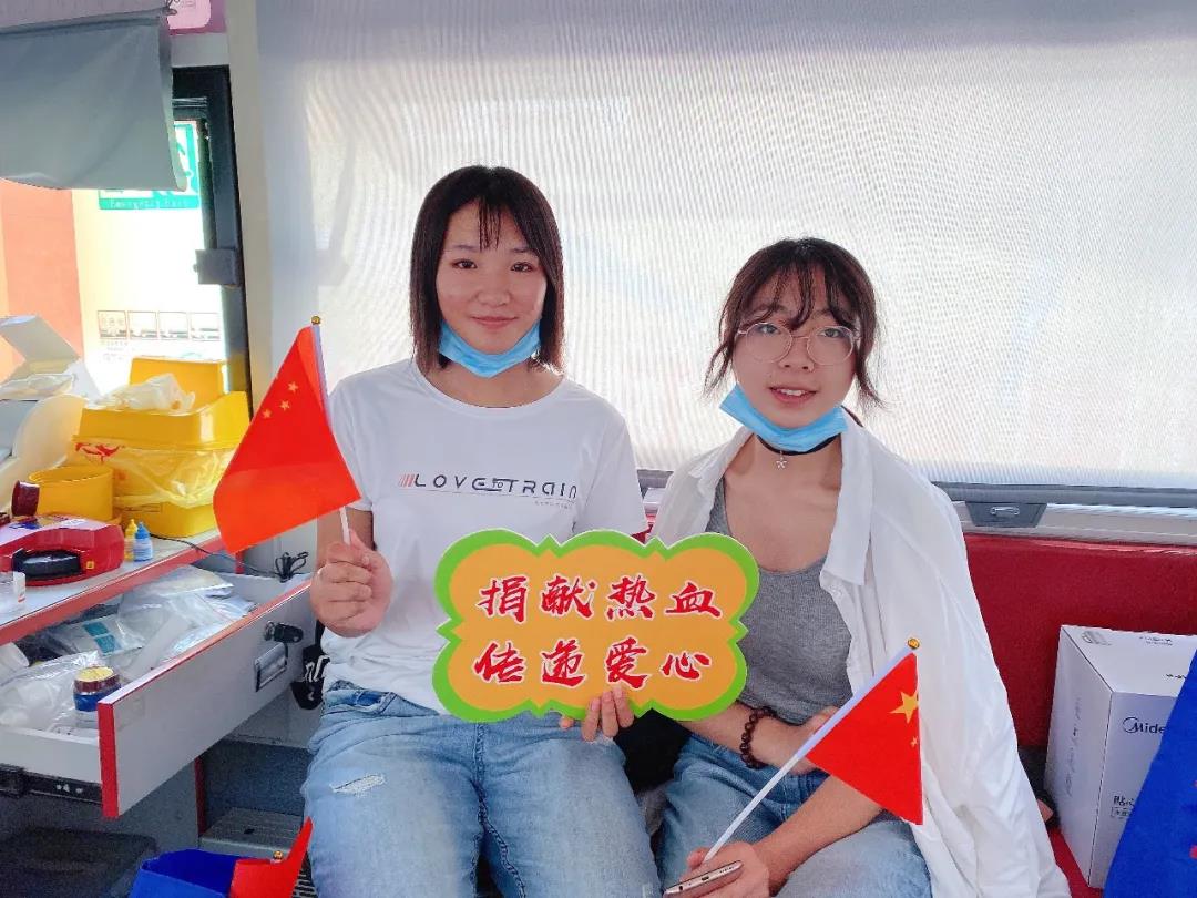 两位女士是东华大学大一新生,特地来无偿献血,她们说自己是班里第一个参加无偿献血的人很自豪,身体里的血液就像头发一样能够不断的生长,捐献血液并不伤身体还能救助别人,献血让人快乐。