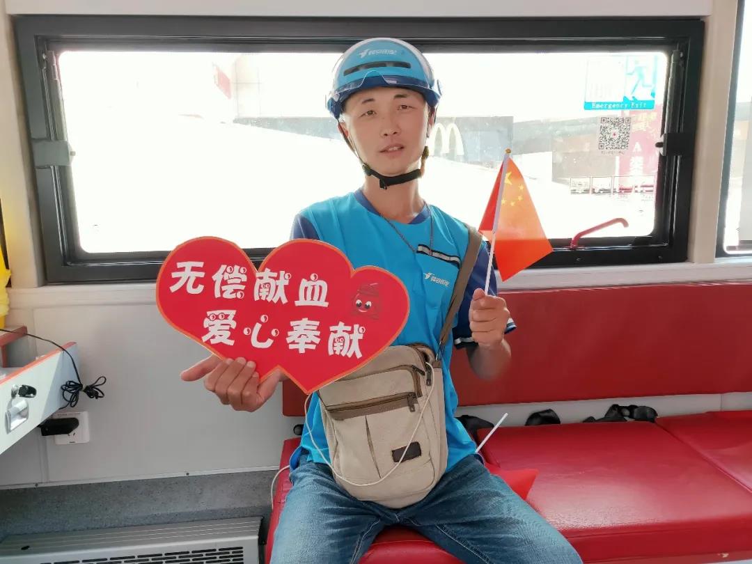 蜂鸟配送员工,上班空闲时间过来捐献爱心,成功捐献全血400ml,他说国庆节再忙也要抽出时间来献血,用自己的热血为祖国送上最美好的祝福。