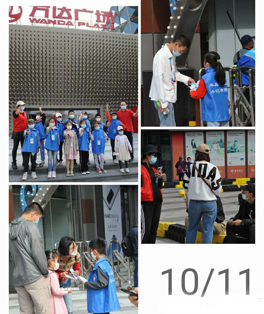 10月11日,半岛晨报社小记者团“大手牵小手,我是小小无偿献血宣传员”学习实践活动在万达广场献血屋附近进行。