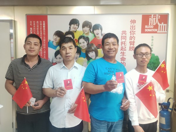 小长假第一天,“潍坊好人”刘万鹏、“潍坊好人”刘洪月带领亲朋好友从家驱车两个多小时,来到血站机采科捐献血小板。他们都是“固定无偿献血者”,他们的热血已经在悄无声息中挽救了很多生命。他们表示“在捐血救人的同时,也祝福伟大祖国繁荣昌盛,国泰民安!”