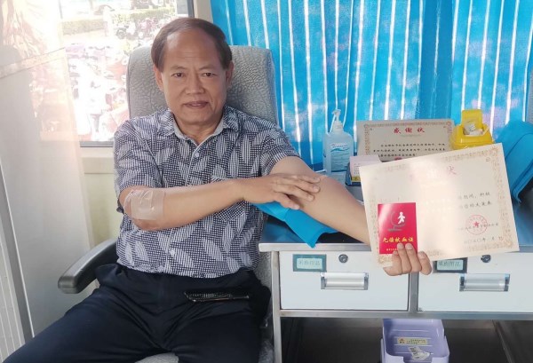 现年59周岁宗先玉,选择在国庆节期间献血,庆祝祖国华诞,也为自己的献血经历画上圆满句号,宗先玉表示,在举国欢庆的节日里,作为一名退伍老兵,理应为社会做点贡献。