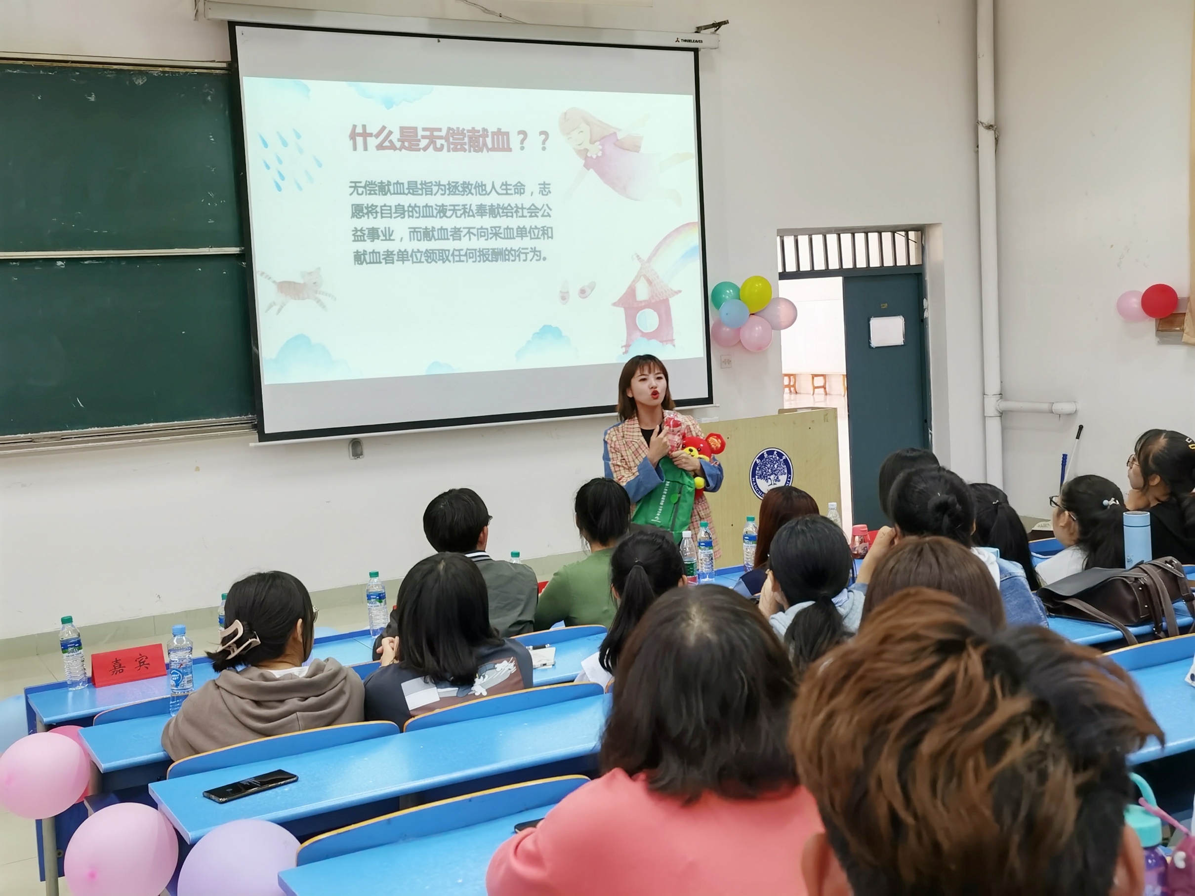 每年的9月我们都会和南昌大学的青年志愿者协会开展无偿献血知识讲座。今年也不例外,主讲人吕思雨针对同学们关心的无偿献血问题,图文并茂地介绍了无偿献血法律法规、无偿献血的好处、献血流程及注意事项等。整个课堂气氛活跃,互动频繁,讲课结束后还为同学们准备了验血型的环节。