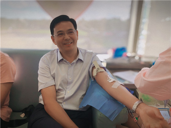 9月22日下午,海南医学院第二附属医院组织开展“心连心献爱心,无偿献血迎国庆”无偿献血活动,院长王毅率先垂范捐献热血,院内党员干部职工纷纷积极参与,最终有136人成功献血,捐献血量39400毫升。