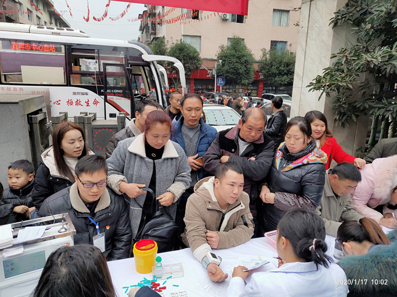 1月17日,珙县孝儿镇104名城乡居民踊跃献血超过3.8万毫升,其中84人一次献血都是400毫升,一次献血400毫升的比例高达81%。据本次献血活动的组织者、珙县孝儿镇中心卫生院主任周兴林介绍:“我们之所以在当下组织孝儿镇干部、群众参加献血,其一是目前天气寒冷,相对于平时街头巷尾流动献血而言,献血人数减少,血液库存紧张。为缓解当前医疗临床用血紧张的局面,孝儿镇的党员和干部、群众,表现出了良好的社会责任感和主人翁精神;二是春节将至,大量农民工和在外读书的大学生返乡。本次献血活动十分踊跃,事实证明,在推动乡镇文明共建和社会公益行动不断向前发展的历史进程中,当代大学生和农民工是一支不可获取的生力军。”随着新冠肺炎疫情防控斗争不断取得积极成效,复工、复产步伐加快和生产、生活秩序进一步恢复。4月8日,江安县221名干部、职工和城乡居民有序、踊跃献血超过6.3万毫升,创下今年以来宜宾单日献血人数和献血总量的最高纪录。在新冠肺炎疫情防控形势最严峻的一个多月时间里,全市2000多名农村居民热血战疫、为爱逆行,他们用奉献爱心的形式,表达了宜宾人民对彻底打赢新冠肺炎防控斗争的坚定信心和决心!