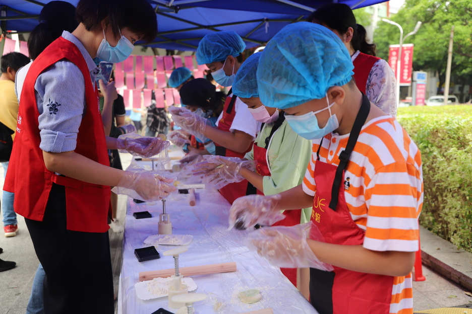 小饼如嚼月,中有酥与饴。志愿者代表齐动手一起共同制作独一无二、属于自己的冰皮月饼。揉面、包馅、打模、装盒……大家虽然都是第一次动手做月饼,但都兴致盎然,做得有模有样,这次手工制作月饼活动,既让大家对中秋这一传统节日有了更深层次的了解和热爱,又在轻松活泼的氛围中传递了快乐,增进了献血者与用血者之间的情谊,整个活动现场热闹非凡,爱意满满。