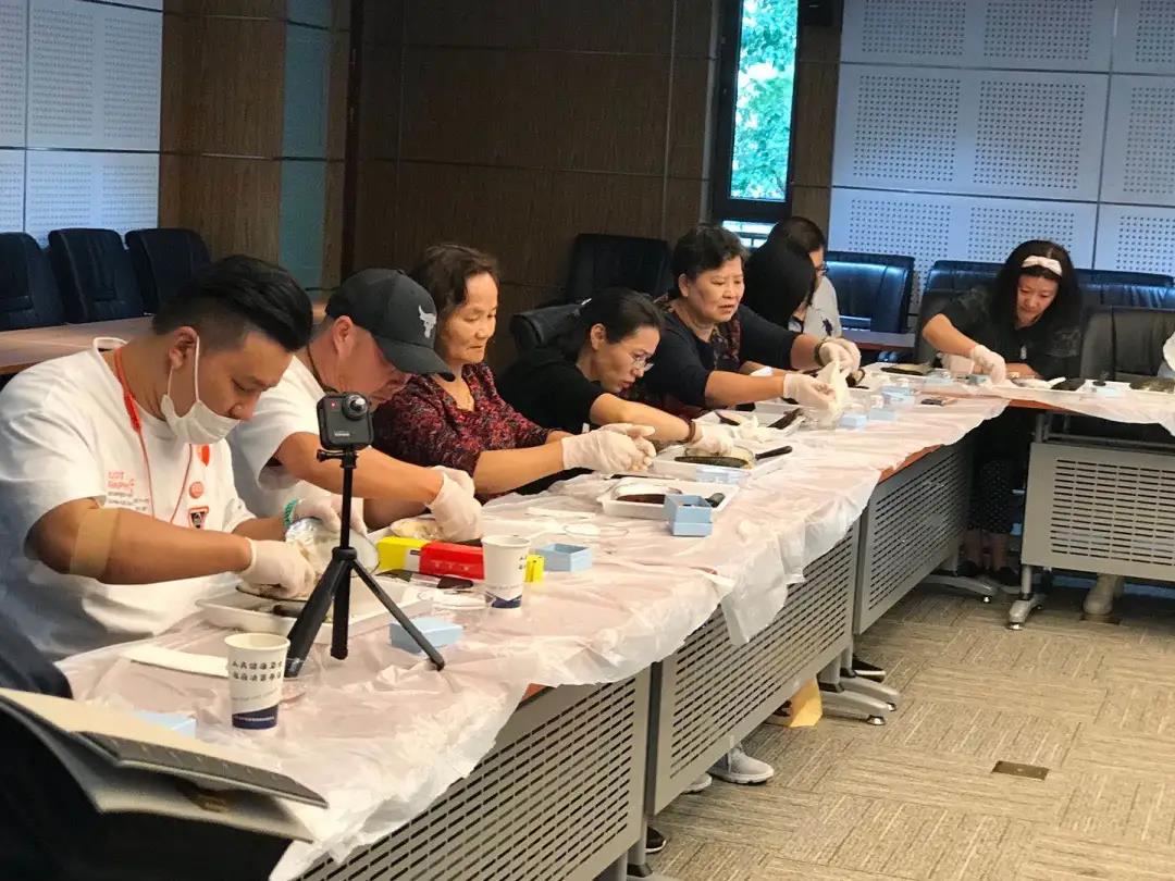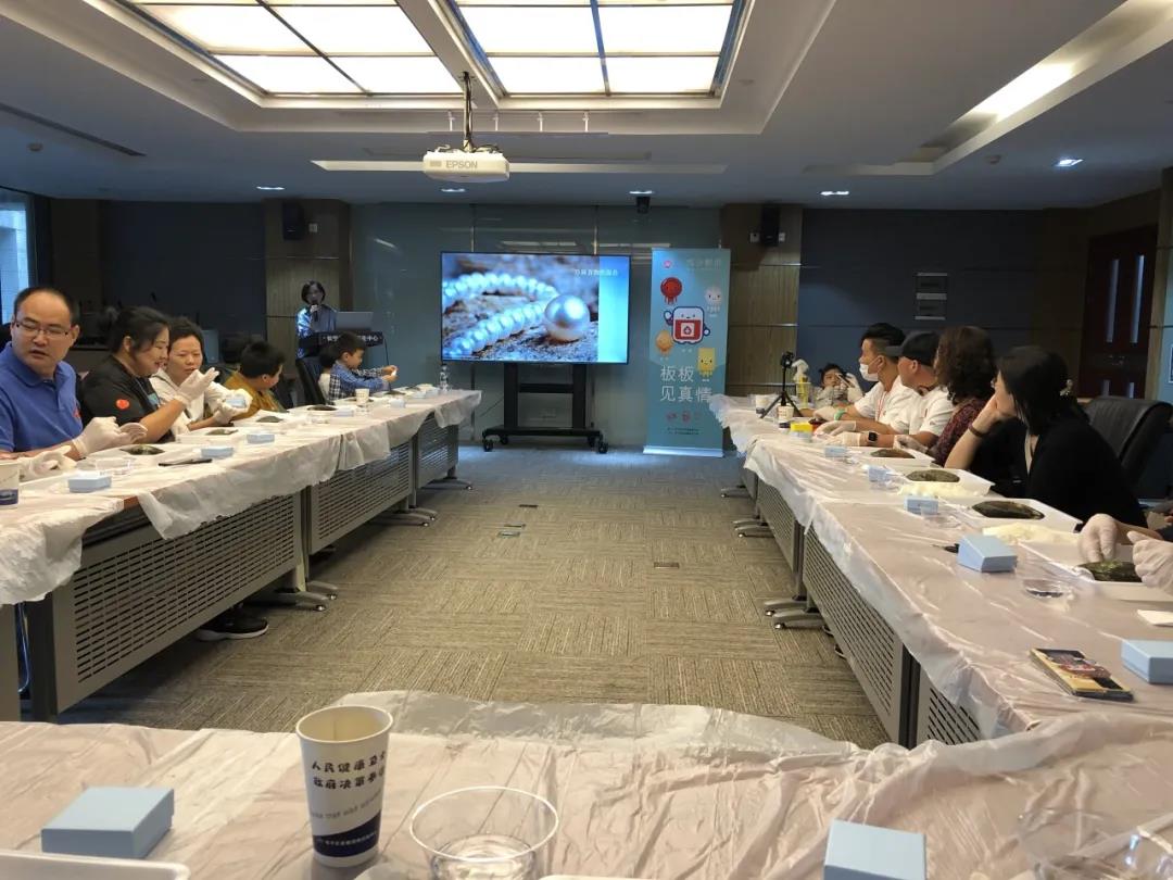 接着志愿者们在老师的指导下,学习如何开蚌取珍珠,如何处理珍珠,打磨,挑选相应的配件让一颗颗珍珠在志愿者的手里变成一件件精致的饰品,活动现场气氛轻松、活跃。