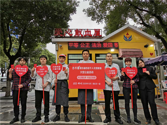 日前,为致敬抗疫英雄、传递爱心力量,吉布鲁开展第五届“百店千人无偿献血”活动,郴州吉布鲁自助餐厅积极响应,组织员工踊跃献血。