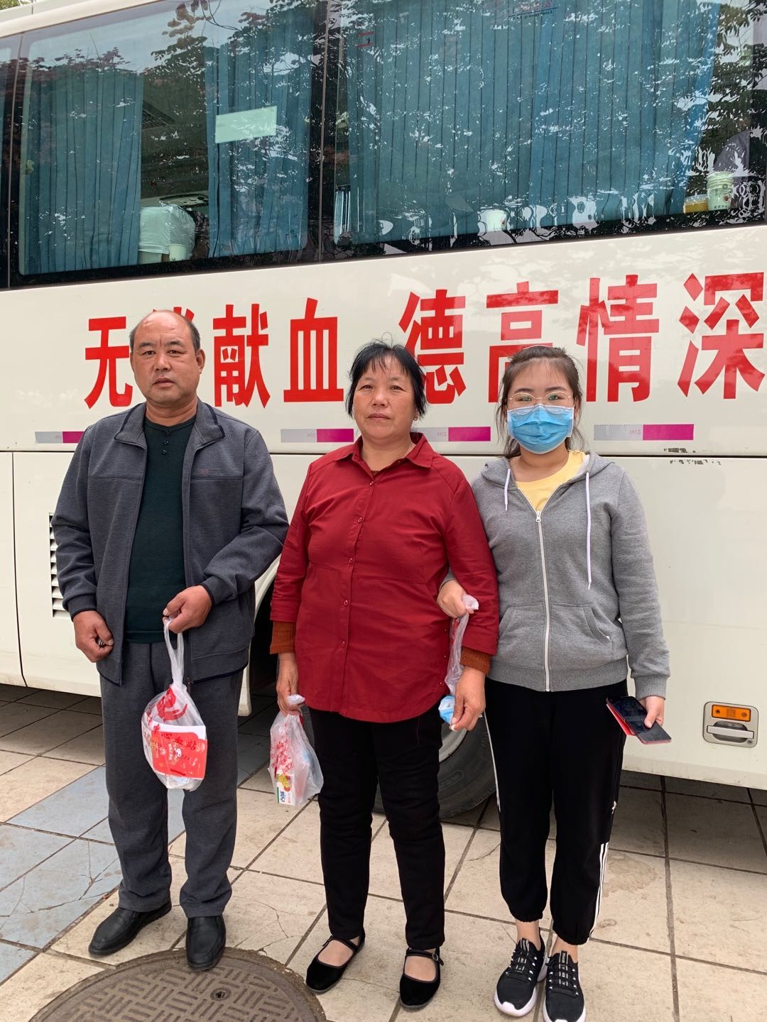 9月下旬,献血车来到高平体育场采血,来了一对夫妻,他们是杨文明和郭荣英,一对固定献血者,和以往不同的是今天他们带着女儿杨秀丽一起来献血。杨文明说:“我的女儿是长治卫校毕业的护士,我们经常献血,也想让女儿加入到献血的行列中,去奉献爱心,回馈社会。”他们一家三口很快的通过了献血前的各项检查,当天累计捐献1200毫升。