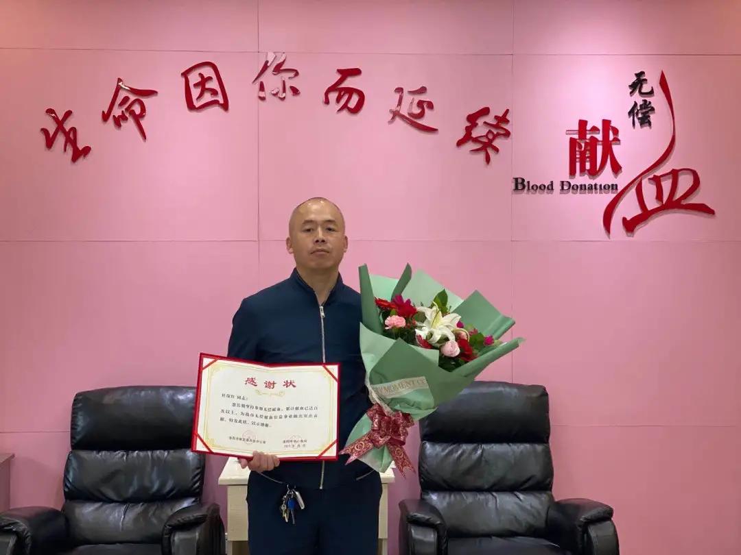 洛阳市第133位百次献血者杜保红:第1次献血时间1998年5月27日,第100次献血时间2020年5月17日。期间共捐献全血11次3800毫升,机采成分血93次94治疗量,曾2次荣获全国无偿献血奉献奖金奖(2014年、2018年)。