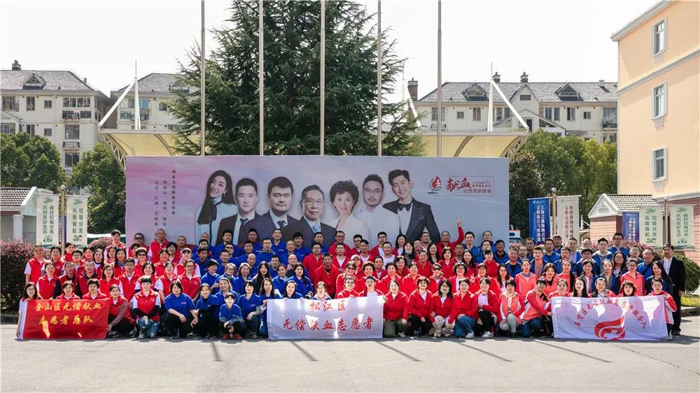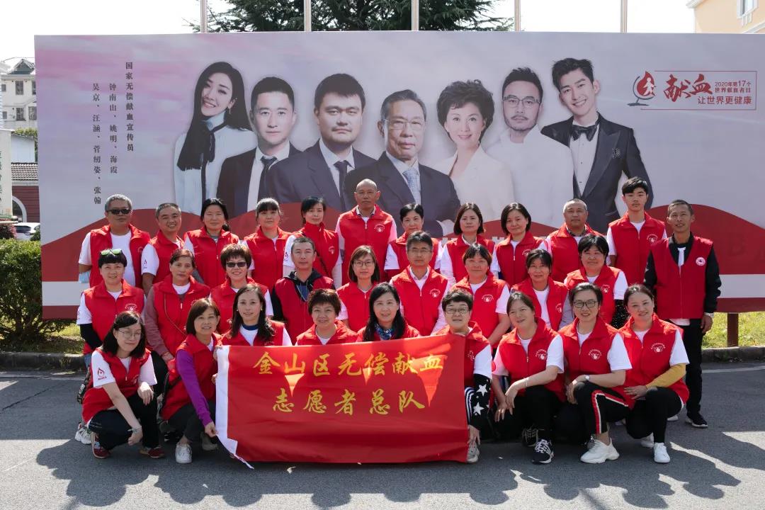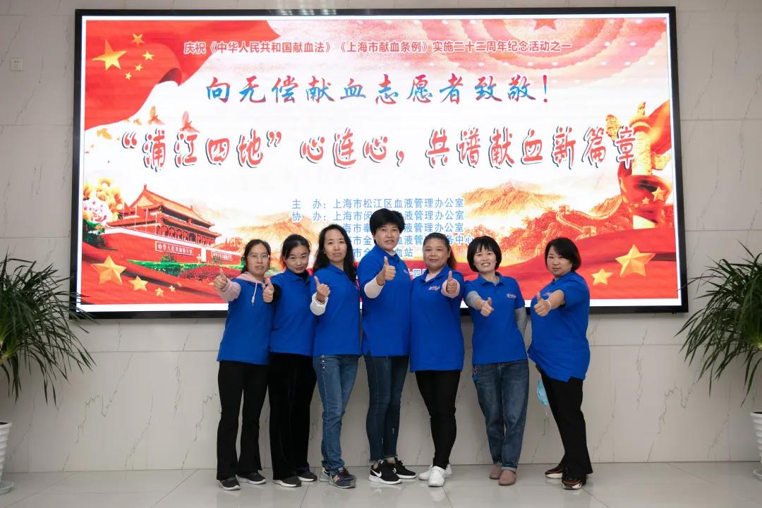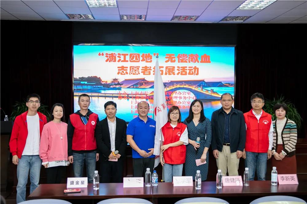 松江区和金山区代表举行队旗交接仪式,把无偿献血精神传承下去,期待明年金山再相见。