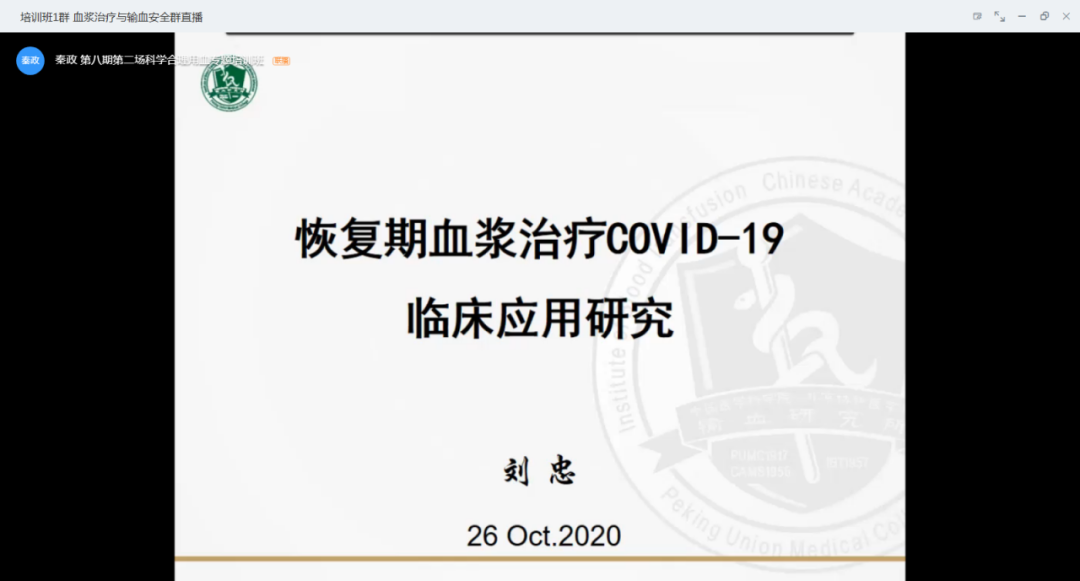 成都输血研究所刘忠所长分享了患者恢复期血浆在新冠肺炎救治中的应用