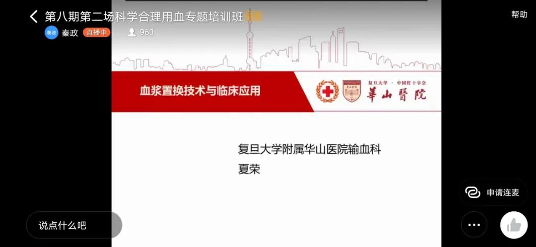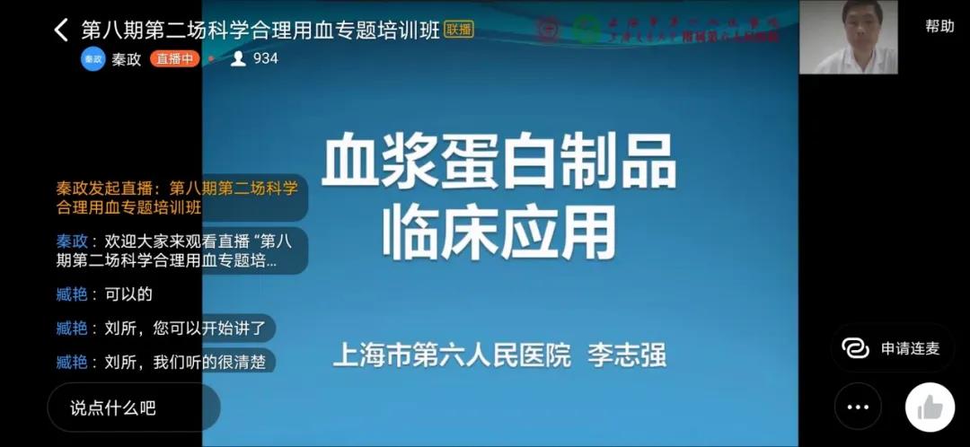 由上海市血液管理办公室主办,海军军医大学第一附属医院承办的“上海市第八期第二场科学合理用血专题培训班”于10月26日下午在线开播。