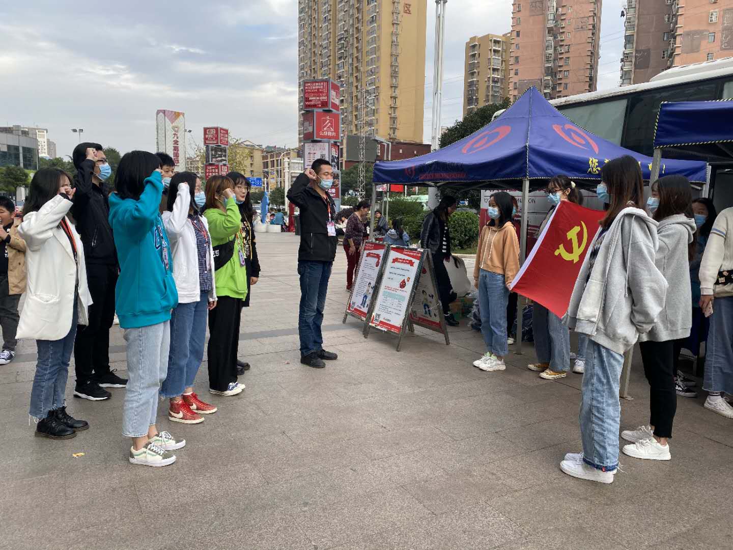 150名大学生现身街头献血屋引围观 市民为他们的善举鼓掌