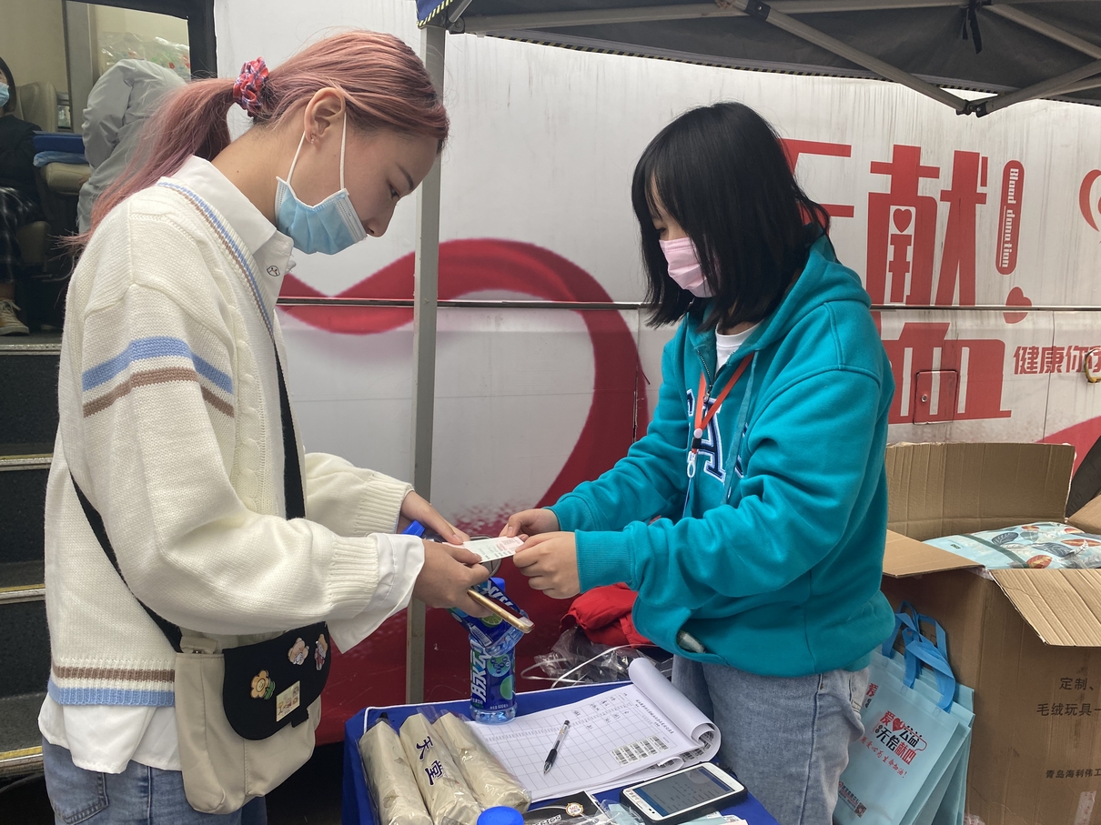 武汉工程科技学院的150名学生有序献血、做志愿服务