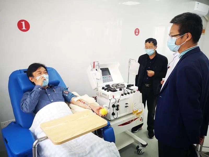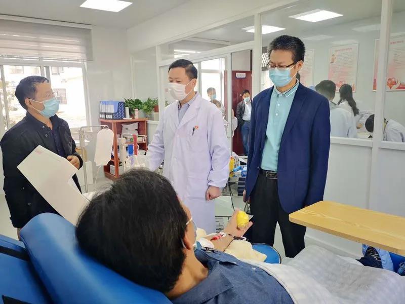 10月29日上午,成分献血单采血小板在崇明区血站成功开展。崇明区卫健委医政医管科科长沈何涛来到献血现场了解单采血小板开展情况,并关心询问志愿者献血感受。