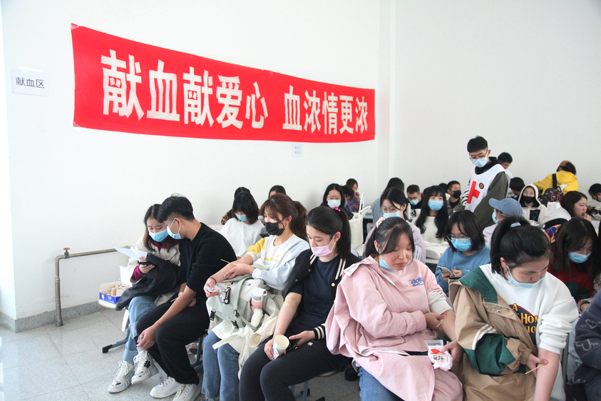 采血现场,各学院的负责老师一直细心观察着每位献血同学,陪他们聊天,给他们拿衣服、倒水,递饼干,送去关怀的同时也缓解了学生们的紧张情绪。