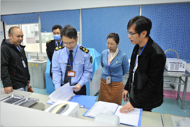 2020年11月4日下午,自治区卫生监督所一行5人来到百色市中心血站开展采供血安全执法检查工作,血站站长梁朦尹陪同检查。