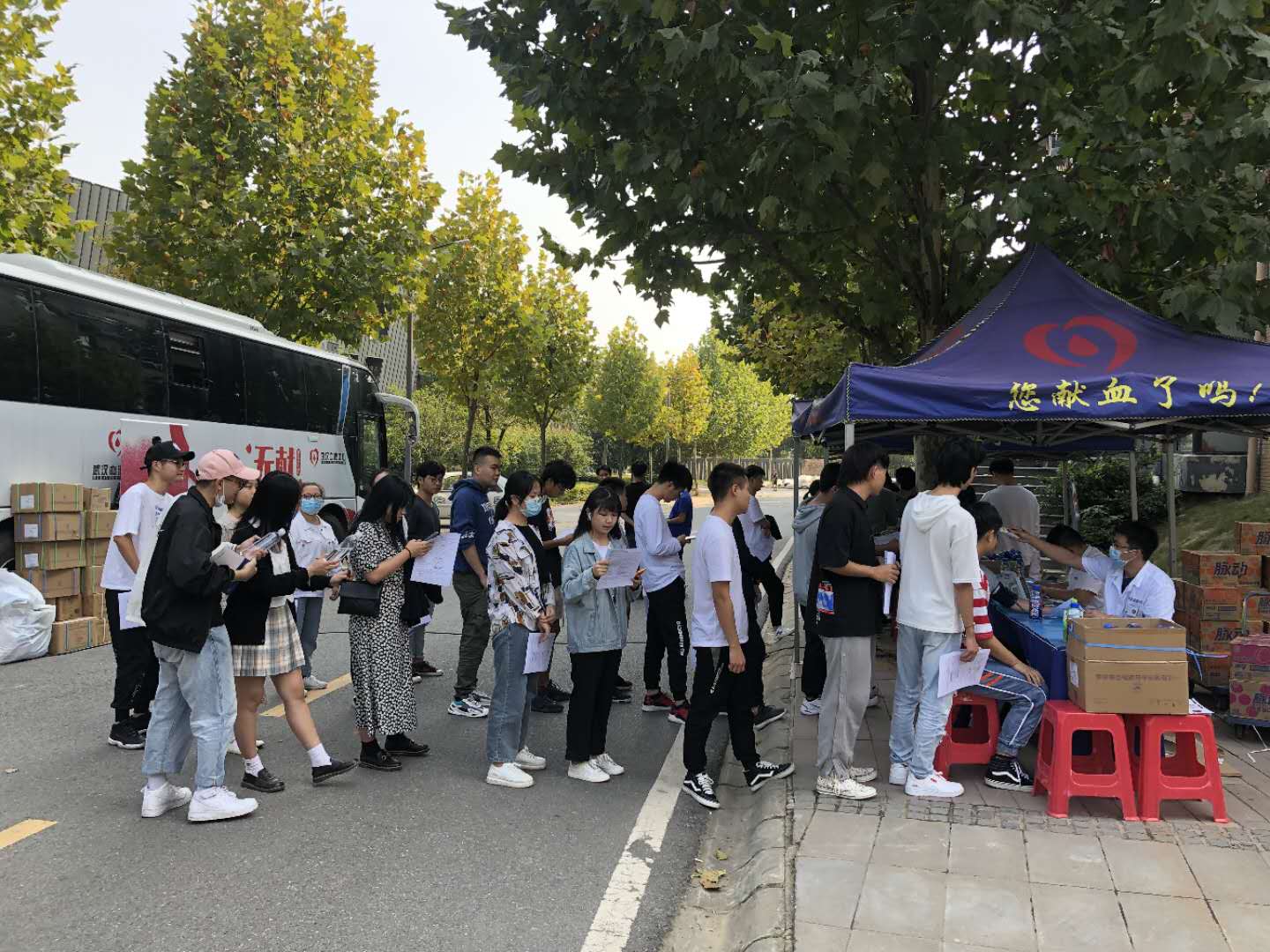 “9月18日,750名文华学院学生挽臂献血,拉开了高校热血浪潮的帷幕,中南财经政法大学、武汉理工大学、汉口学院等二十多所高校陆续加入。”武汉血液中心招募科副主任王丹向记者介绍,随着9月份正式开学,各大高校在做好防疫工作的前提下,纷纷主动加入到无偿献血的爱心队伍中来,“献血车进校单次效率比往年提升不少,十月高校献血量已经超过去年同期的水平。”
