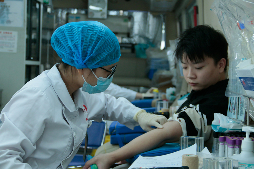 学生们在献血(汪昊拍摄)