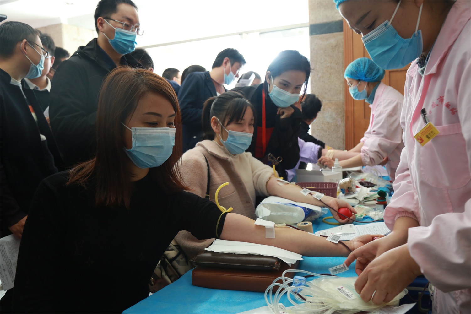 上午8点,流动献血车准时抵达孝昌县教育局,参与活动的教职员工也陆续前来,在教育局一楼大厅内排起了长队。其中,有连续献血15年从未间断的中年教师,也有刚入职不久、初次献血的的青年教师……他们用实际行动书写着大爱精神。