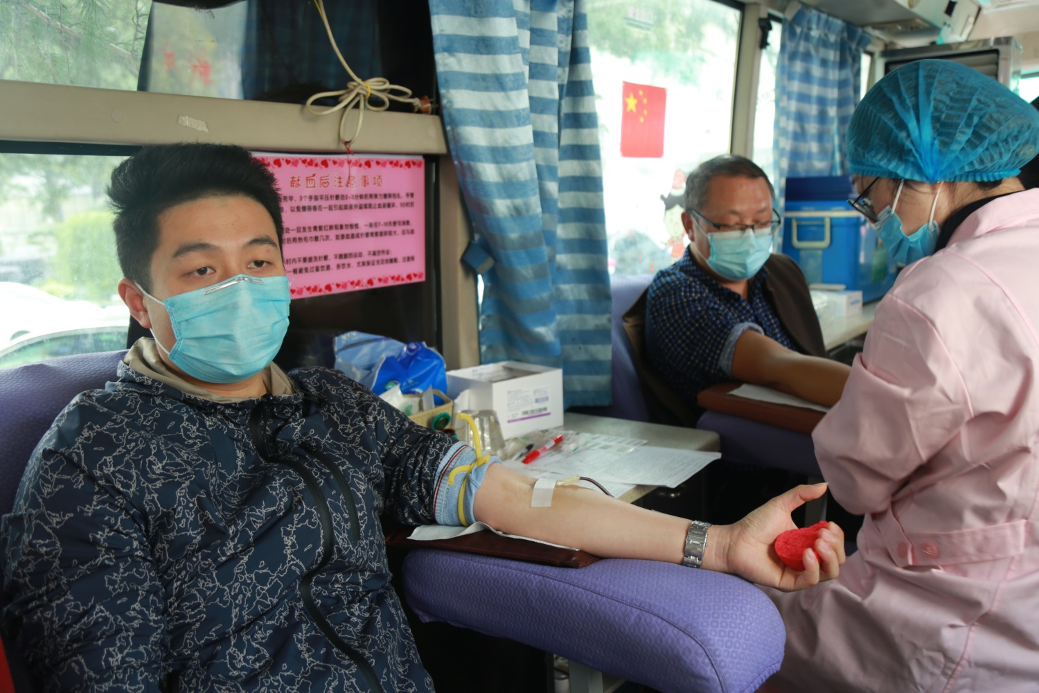 来自孝昌二中的教师刘利强,刚刚上完早自习就赶了过来。他说,自己平时体检抽血都会觉得紧张,此前未曾参与过无偿献血。但他的妻子是个固定献血者,鼓励他克服不良心理暗示,所以,他在献血前做好了充分的准备。登记、体检、血液初筛之后,刘老师顺利献出了300毫升爱心血:“献血真的不可怕。”