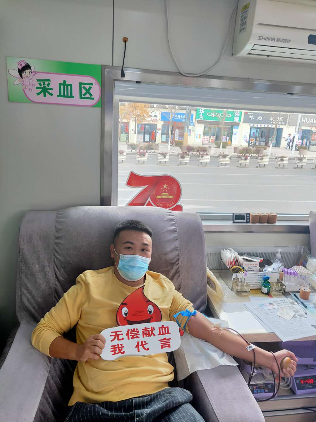 看着他已完全放松了紧张的心情,我们正式投入到了对话中。我问他“你怎么会来献血了?”他说:“我身边的朋友都在献血,我也想奉献自己的爱心,尤其是今年,多灾多难的一年,我更想用自己的一腔热血,传递正能量。”听了他的话,我内心对他充满佩服,他已不是从前那个莽撞少年,早已成了一位有担当,有责任感,有爱心的大男孩。