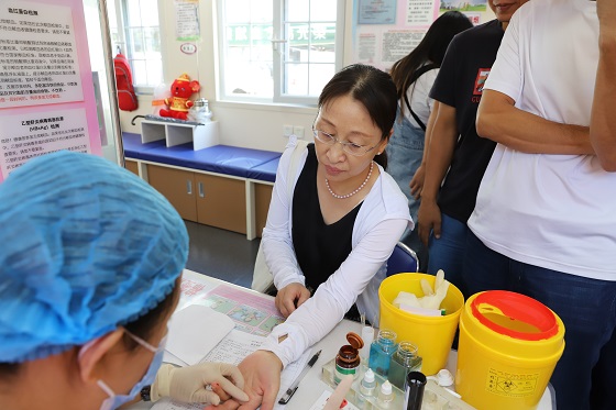 不止这样,檀春肖在日常工作中也会把无偿献血招募当成自己工作的一部分。在接触病人的时候,只要提起有关血液的事情,檀春肖就会为患者科普无偿献血知识。有时候下村体检,考虑到献血车有时候不能开到每一个村落,檀春肖就用口头宣讲的方式,宣传无偿献血的意义和作用,使无偿献血传播的更远、更深入。期间经常听到有老人说想献献血,可是年龄也超了,血脂也高,很遗憾献不了了。所以每当檀春肖在村里看到合适献血的年轻人后,总是语重心长地给他们科普无偿献血,告诉他们趁着年轻参加献血,既能帮助他人又能健康自己。一次次耐心的讲解,以自己的亲身经历为例子,润物细无声地感染着周围的人。