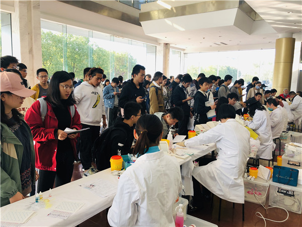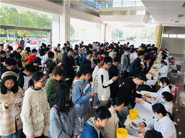 江苏省血液中心于11月14日在东南大学九龙湖校区开展了无偿献血活动,广大学子积极参与,一股无偿献血的爱心热潮在东大校园内澎湃而起。