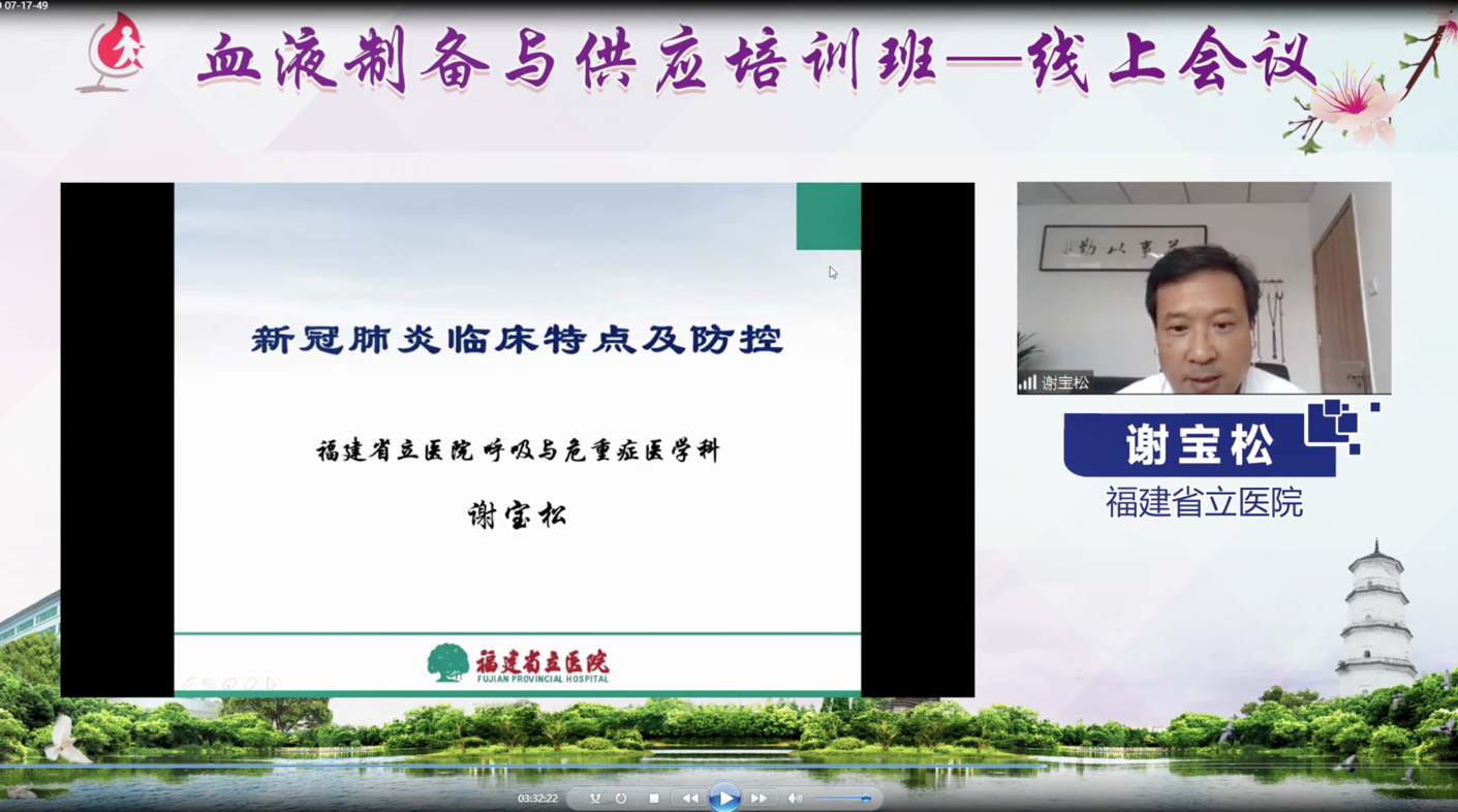 福建省新冠肺炎医疗救治临床专家组组长、福建省立医院呼吸与危重症医学科主任谢宝松教授讲授《新冠肺炎的临床特点与防控》,根据当前疫情防控形势,从新冠肺炎临床和实验室特点、救治和防控要点等方面做了一场指导性强、实操应用有效的专题培训,增强了采供血一线工作的疫情防控专业化水平。