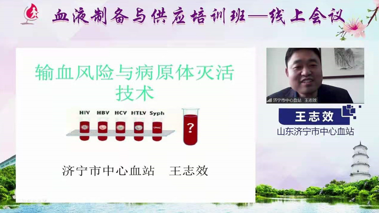 山东省济宁市中心血站副站长王志效讲授《病毒灭活技术现状及前瞻》,通过对输血原理及病原体经输血传播的危害性等知识深入浅出的讲解,向学员们展现了血液病原体去除和灭活的必要性及病毒灭活技术的未来趋势。