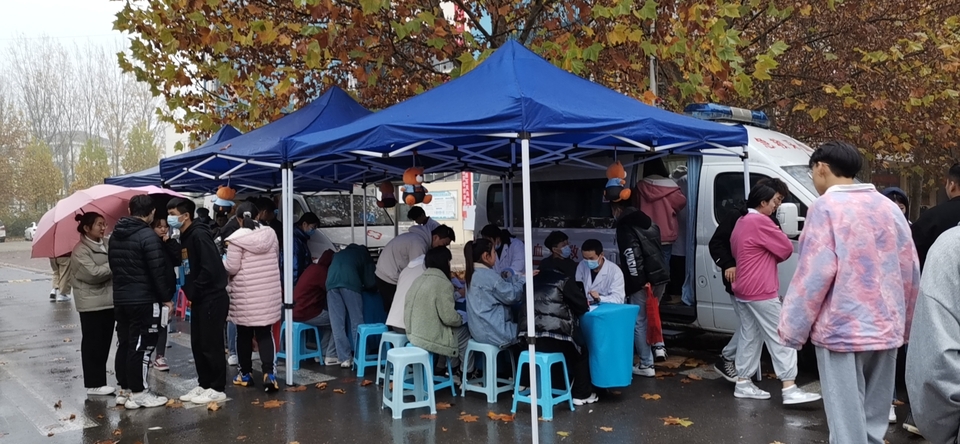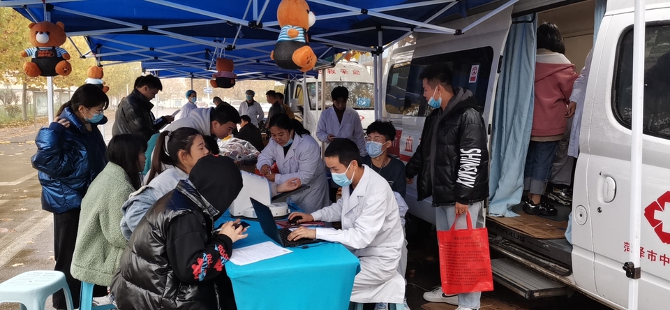 11月17日上午,初冬的天气逐渐寒冷,天下着细雨,也没能阻挡住菏泽家政职业学院学生争相献血的热情。两天时间有1026名学生奉献出了青春热血。