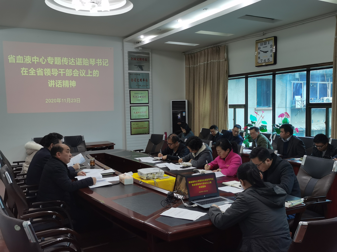 11月23日,省血液中心召开专题会议,传达谌贻琴书记在全省领导干部会议上的讲话精神。