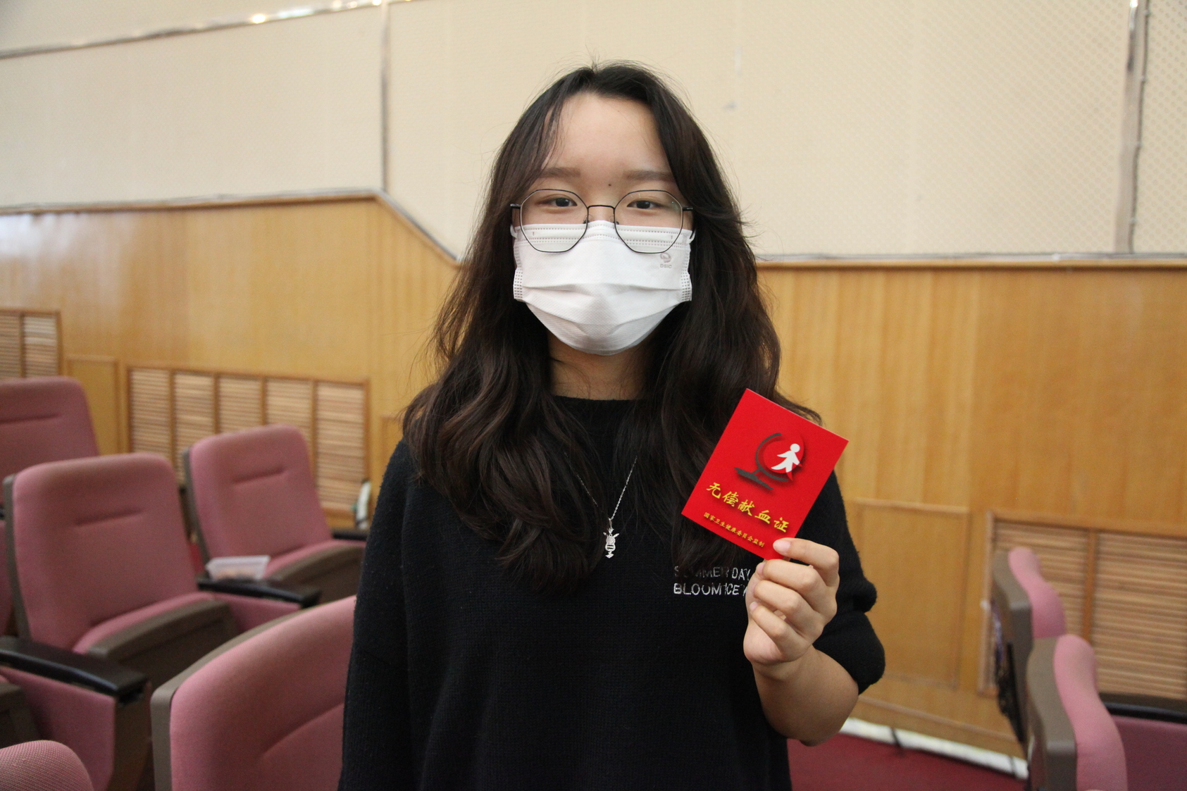 当19级财务管理专业的黄禧嘉被问到献血感受时,她说:“感觉在大学期间应该做一些有意义的事情。帮助别人,快乐自己不能只停留在口头上,无偿献血能救助他人,我觉得很开心。”