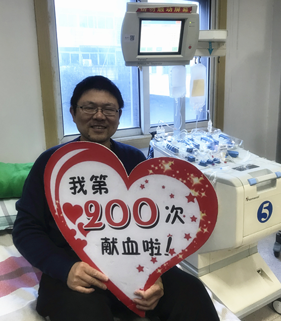 今年48岁的朱韧是中航洪都的一名普通职工,从1998年至今已无偿献血200次,其中全血10次2800毫升,机采血小板190次362.5个治疗量。仅2020年,他就无偿捐献机采血小板19次,37个治疗量。2020年11月23日,他像往常一样来到江西省血液中心,捐献第200次血液。