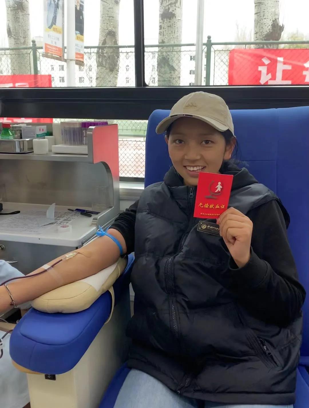“刚下课,看到献血车就过来了,尽自己的微薄之力吧。”